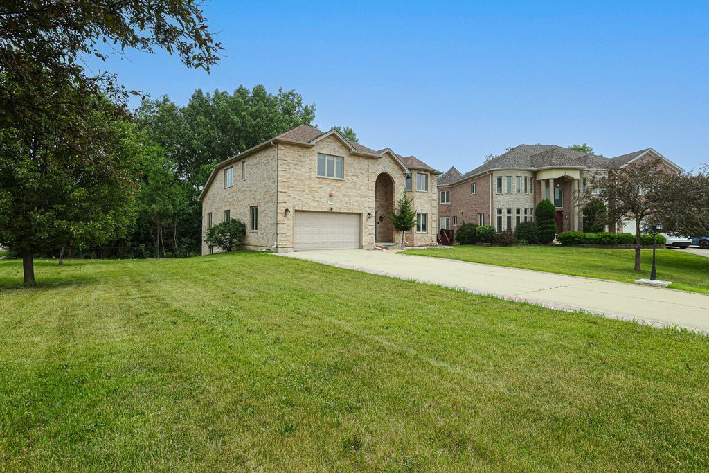 All brick front and back, open floor plan with almost 5000 Sq Ft finished area. Vaulted ceiling with crown molding. 5 bedrooms & 5 full baths. Huge gourmet kitchen with granite counter-tops, back splash, Maple cabinets & island in the center, with all SS Appliances. Huge master bedroom with his/her closet and a sitting area. Master bath has double vanity, whirlpool tub and a standing shower. Other bedrooms are large size with walk-in closets, Jack & Jill bath! All bathrooms have marble tiles. Formal living room has separate dining room and fireplace in family room. First floor den /office can also be used as parents' bedroom has full bath. Full finished basement with bedroom & full bath, and a bar. House is equipped by sprinkler system, and has Dual zone AC unit. Water heater was replaced in Oct of 2018.